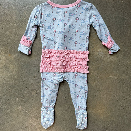 Print Muffin Ruffle Footie with 2 Way Zipper in Dew Magical Princess