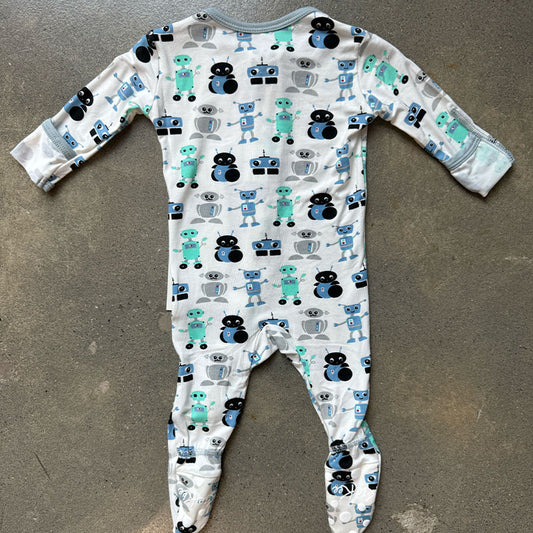 Print Footie with 2 Way Zipper in Natural Robots